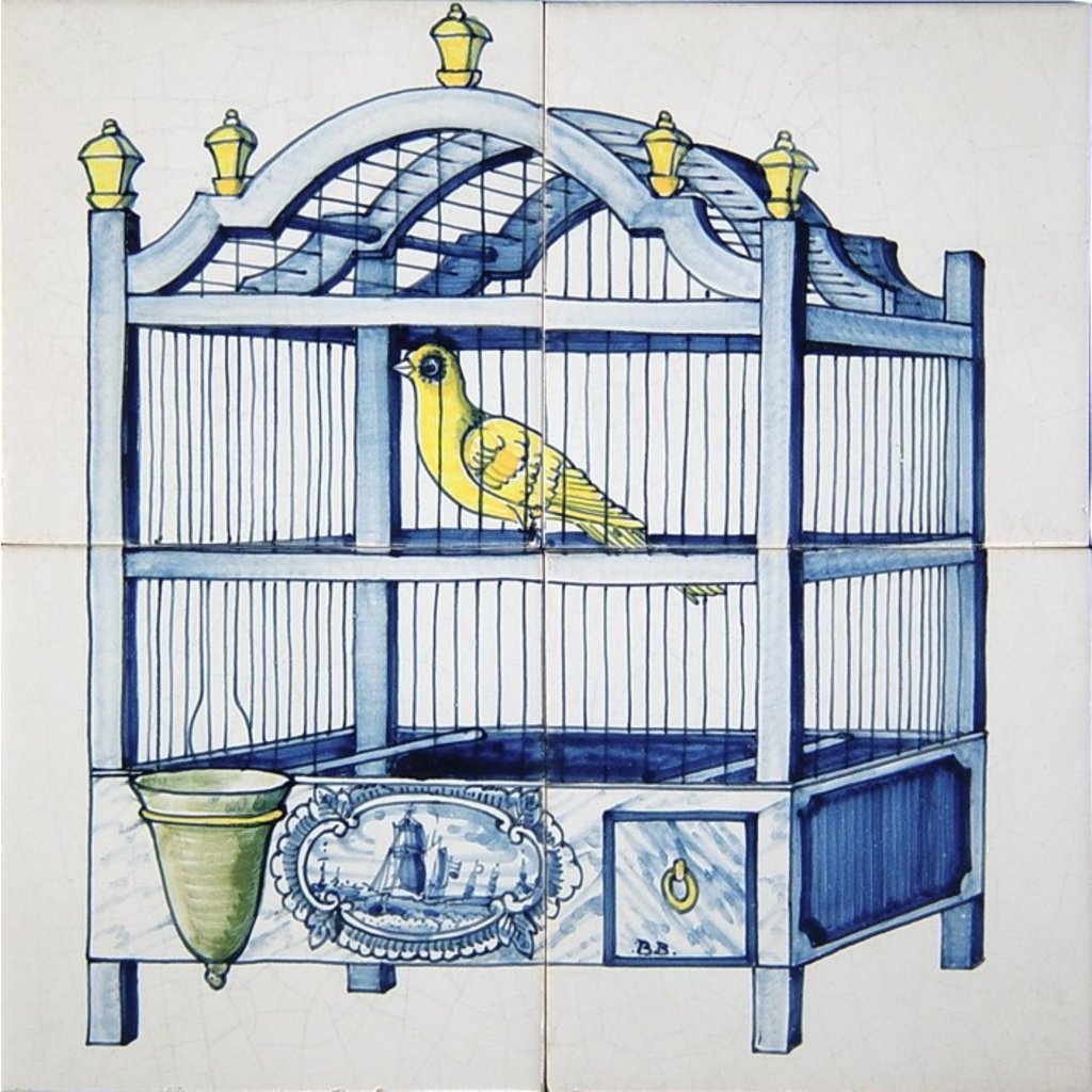 Tegeltableau vogelkooi met kanarie (ca.1850).