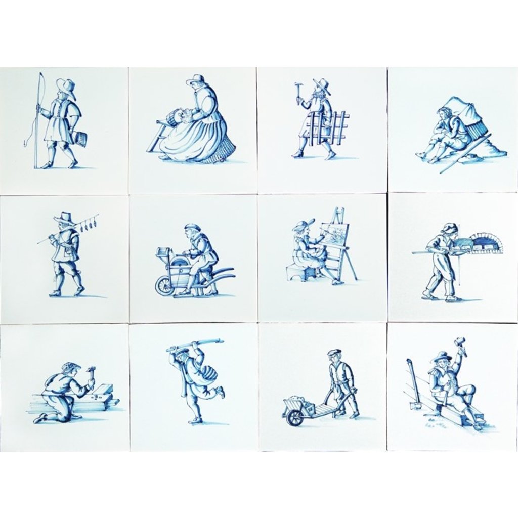 Handpainted Dutch Delft tiles 13x13 cm are covered with white tin glaze. This recipe is being used since 1550 in the northern parts of the Netherlands.
