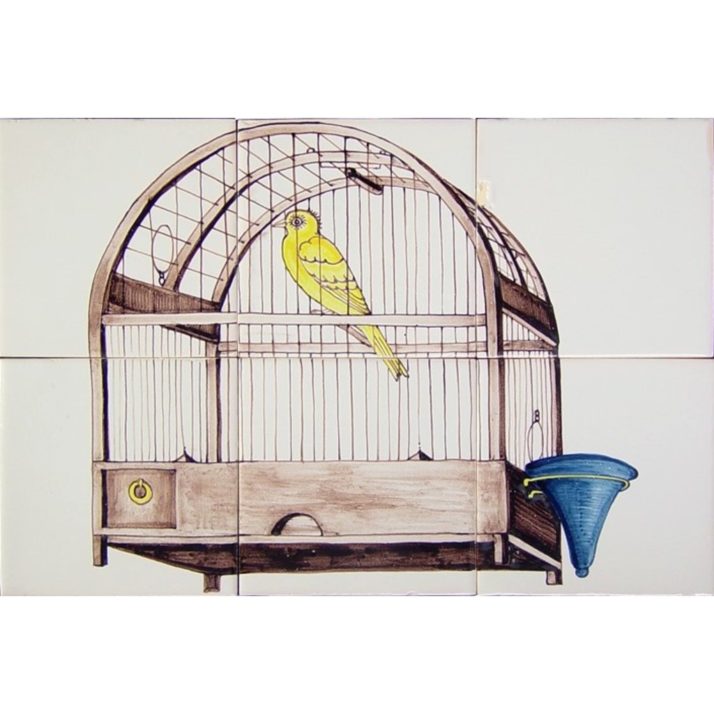 Tile panel with birdcage and canary in manganese (c. 1800).