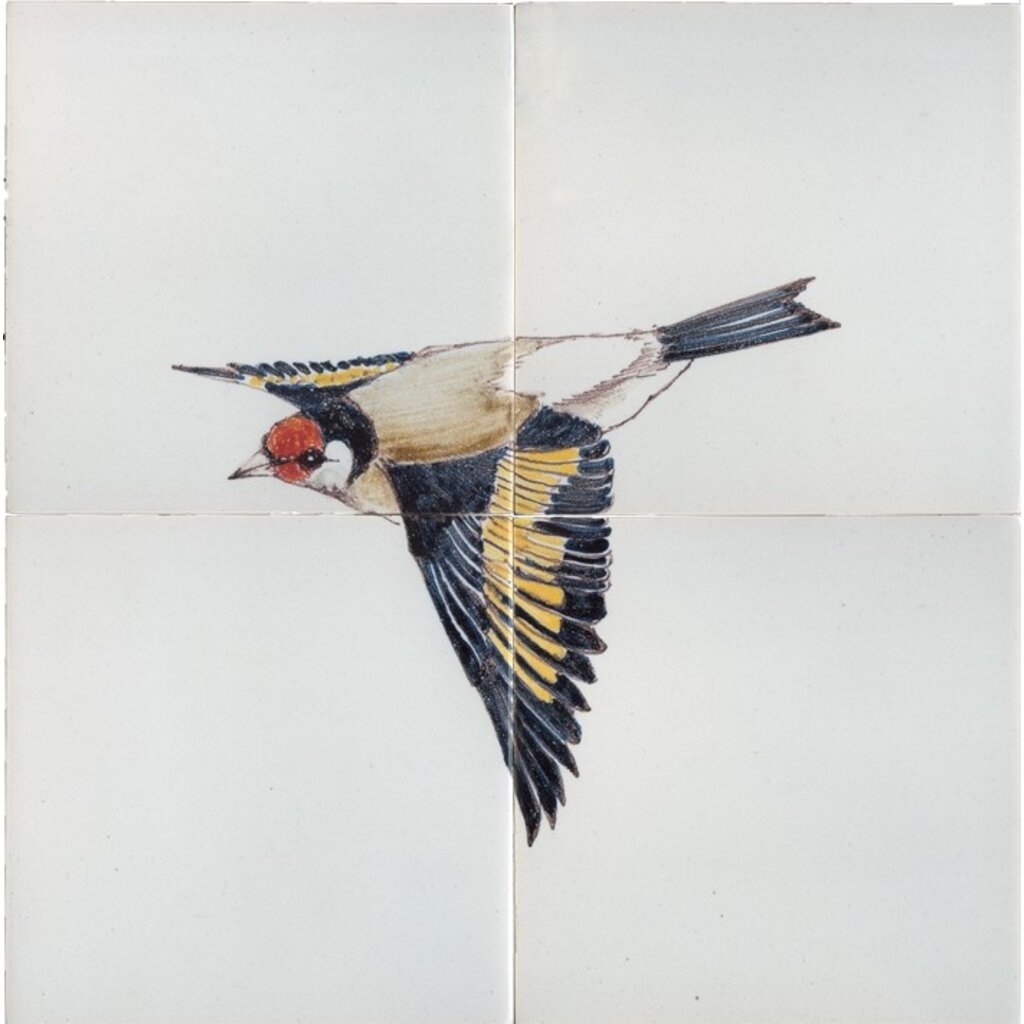 Tile panel with flying Goldfinch.