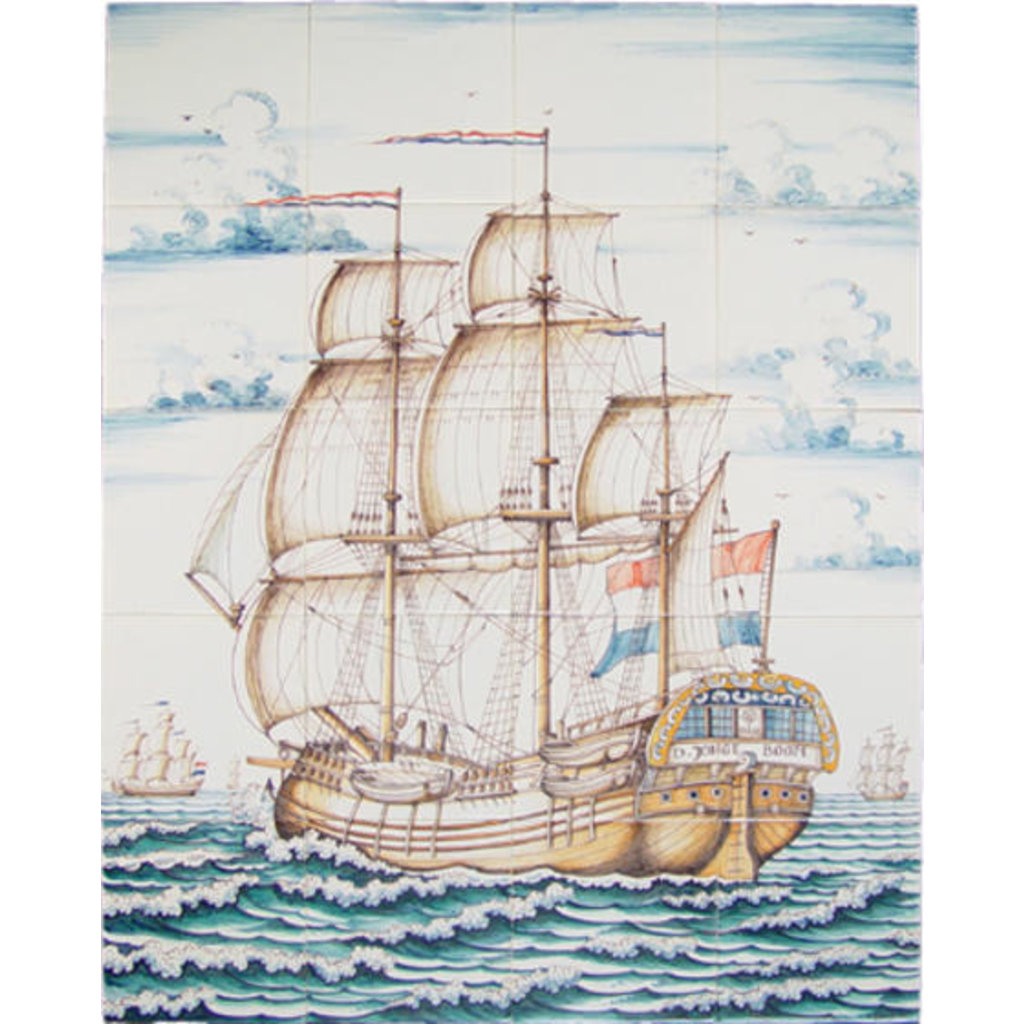 Tile panel with whaler 'D.Jonge Boom' in colour (c. 1750).