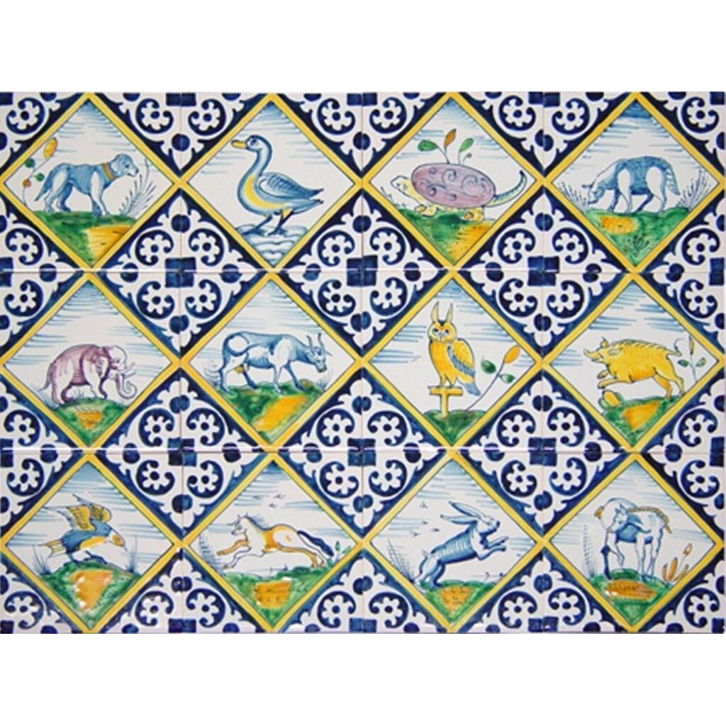 Tiles with animals square in colour (c. 1625).
