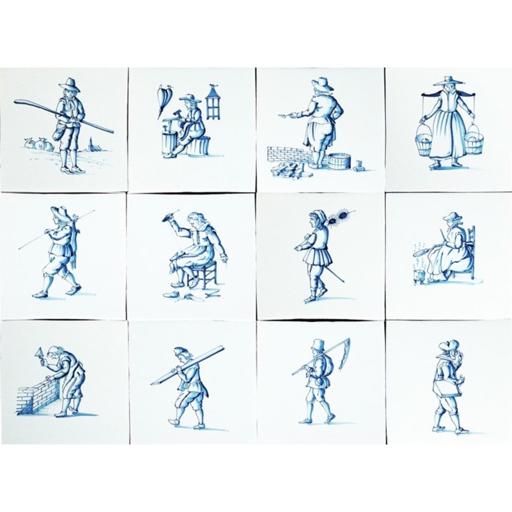 Wanneer u slechts enkele tegels van deze serie tegels met ambachten wilt kopen, kunt u telefonisch of per e-mail contact met ons opnemen. De prijs van een enkele tegel bedraagt € 50,00. De nummering is van linksboven naar rechtsonder.
