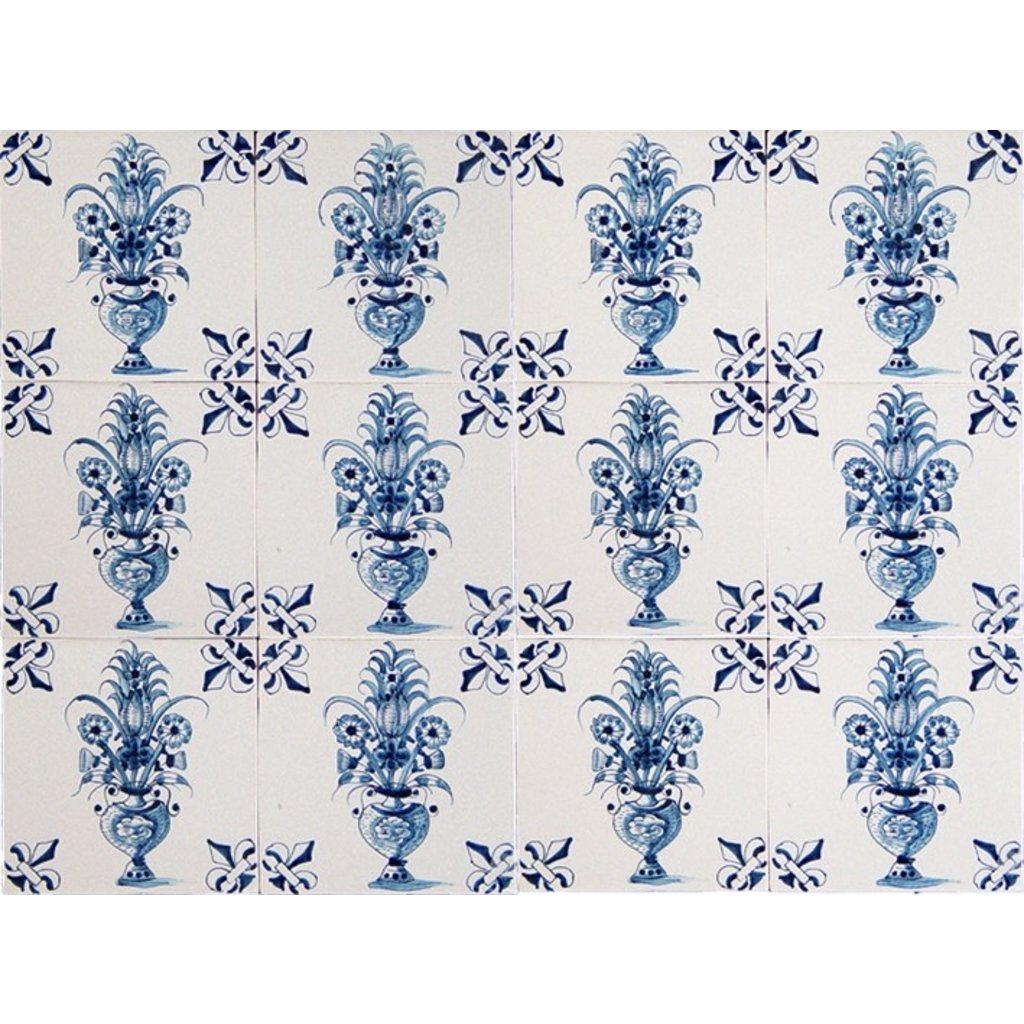 Wanneer u slechts enkele tegels van deze serie bloempotjes wilt kopen, kunt u telefonisch of per e-mail contact met ons opnemen. De prijs van een enkele tegel bedraagt € 40,00. De nummering is van linksboven naar rechtsonder.