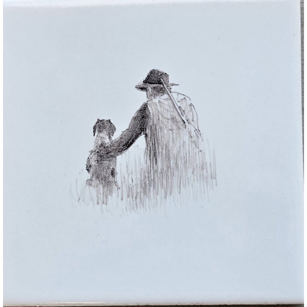 Tegels met jachttaferelen sepia in afmeting 13x13 cm.