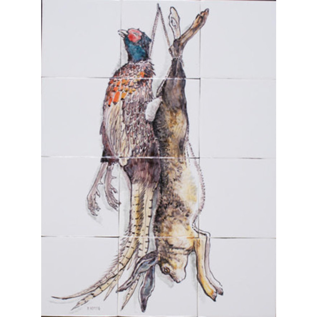 Tegeltableau met Haas en Fazant (geschoten wild).