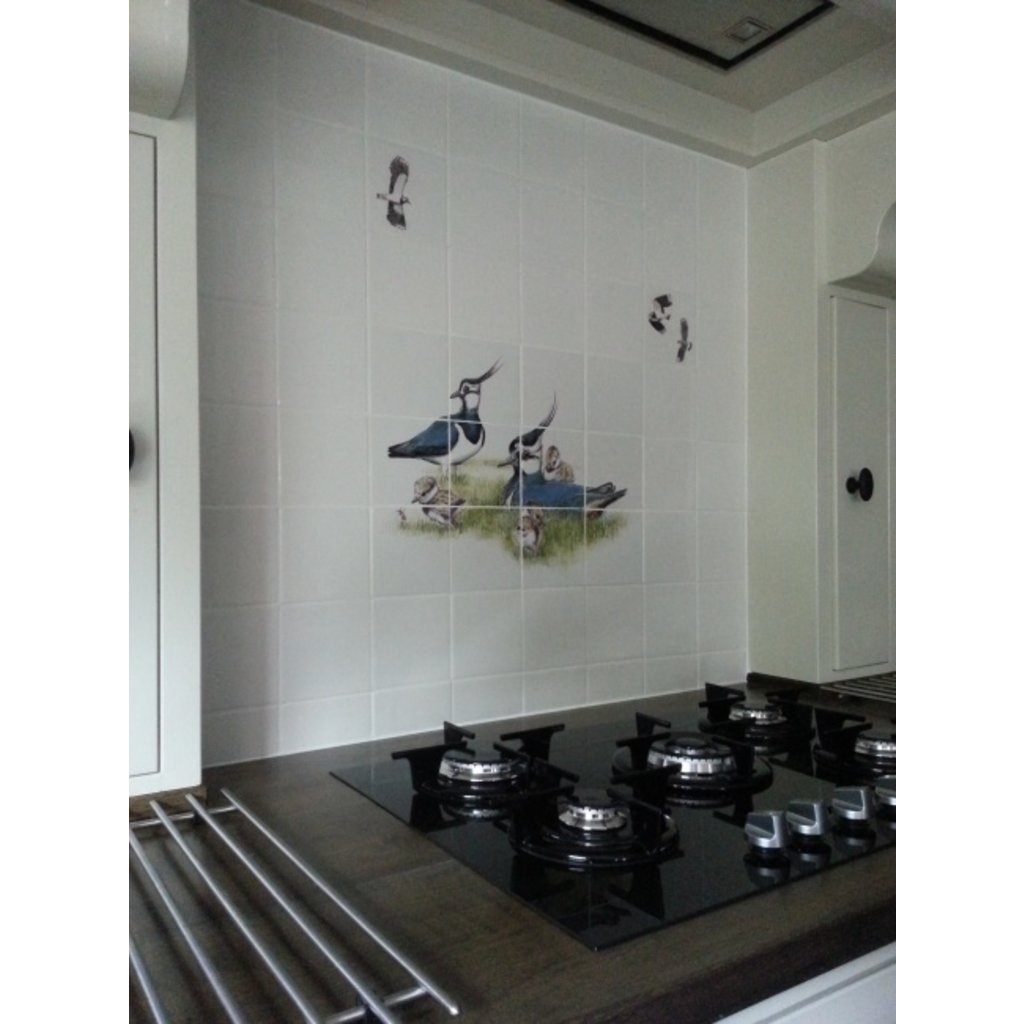 Tegeltableau Kieviten met kuikens.