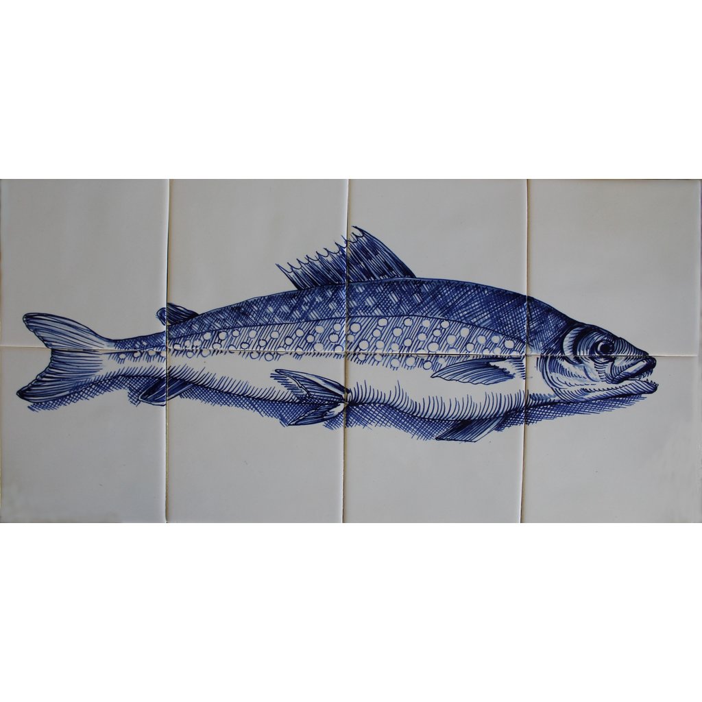 Tegeltableau met vis naar oude prent.