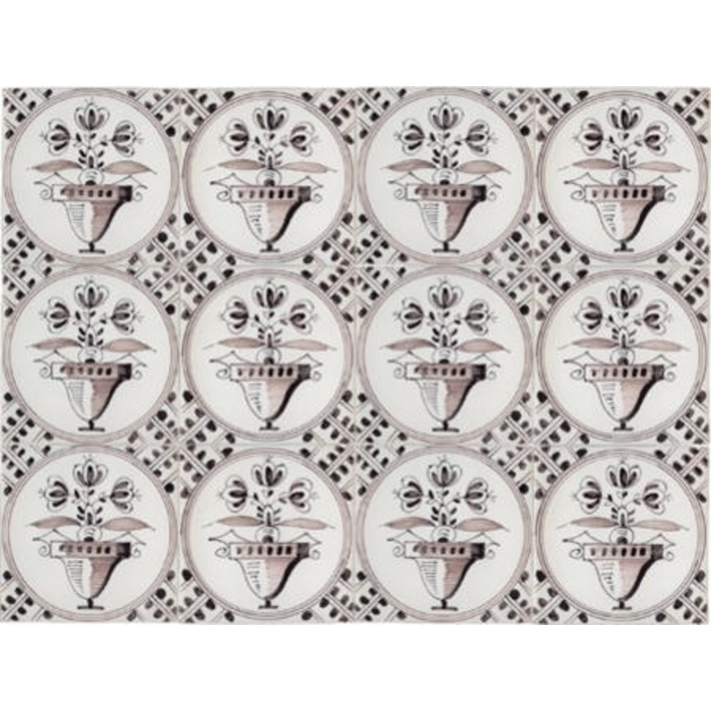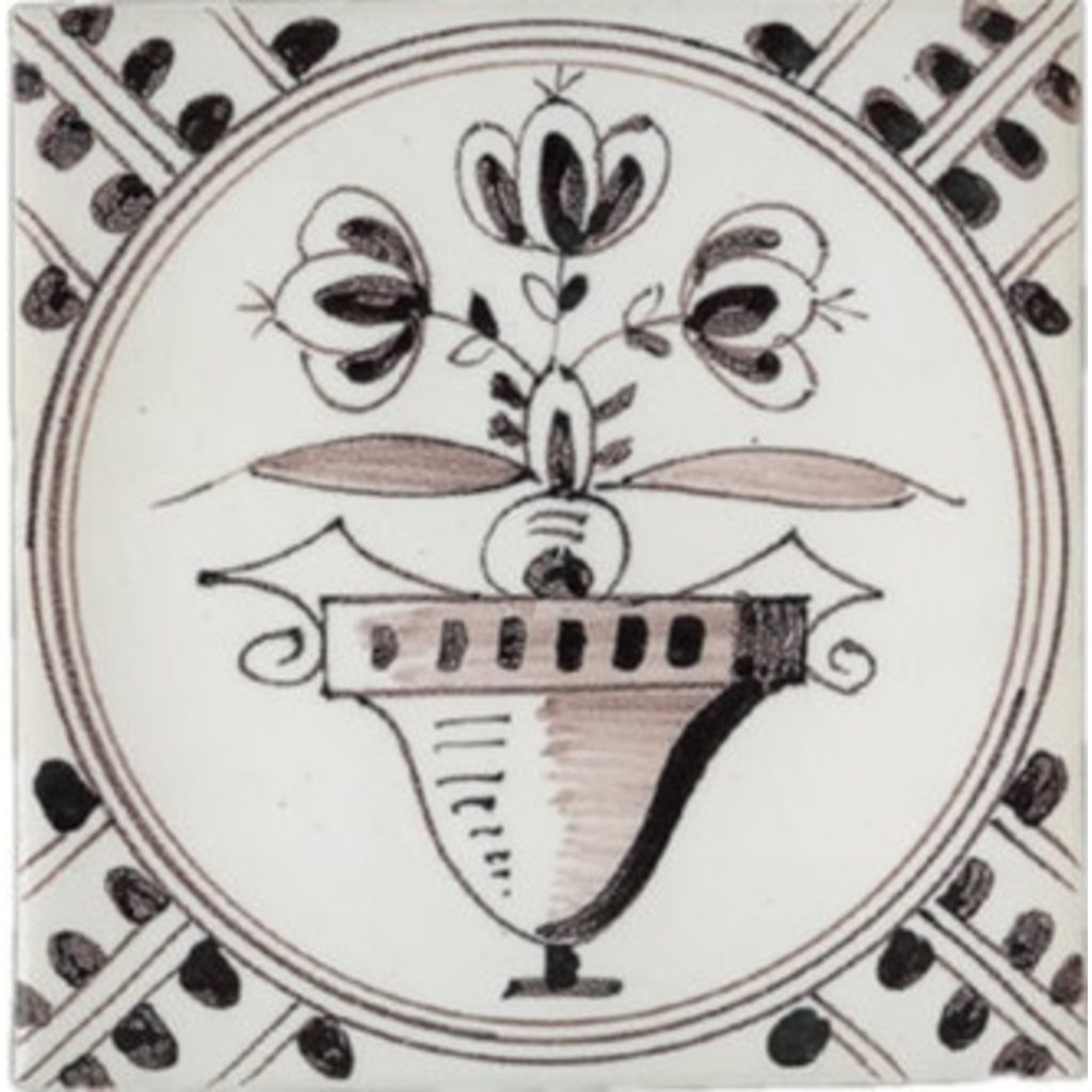 Tegels met bloempotjes meandercirkel mangaan in afmeting 13x13 cm.
