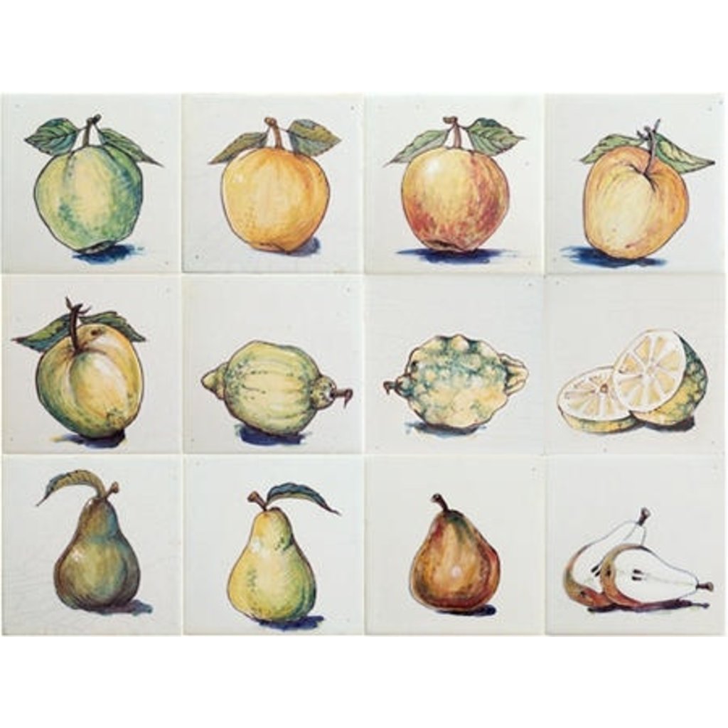Wanneer u slechts enkele tegels van deze serie fruit wilt kopen, kunt u telefonisch of per e-mail contact met ons opnemen. De prijs van een enkele tegel bedraagt € 40,00. De nummering is van linksboven naar rechtsonder.