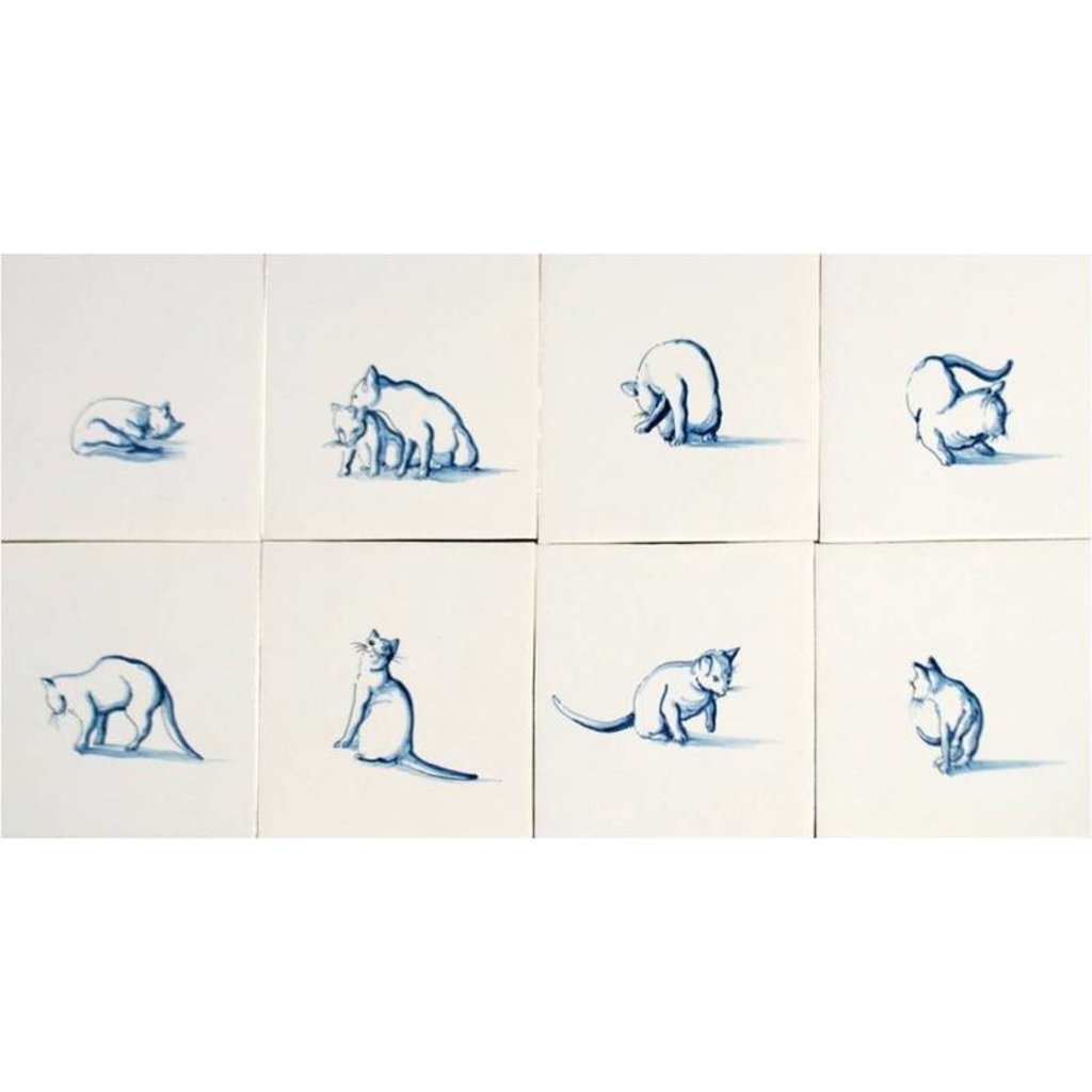 Tegels met katten in afmeting 13x13 cm.