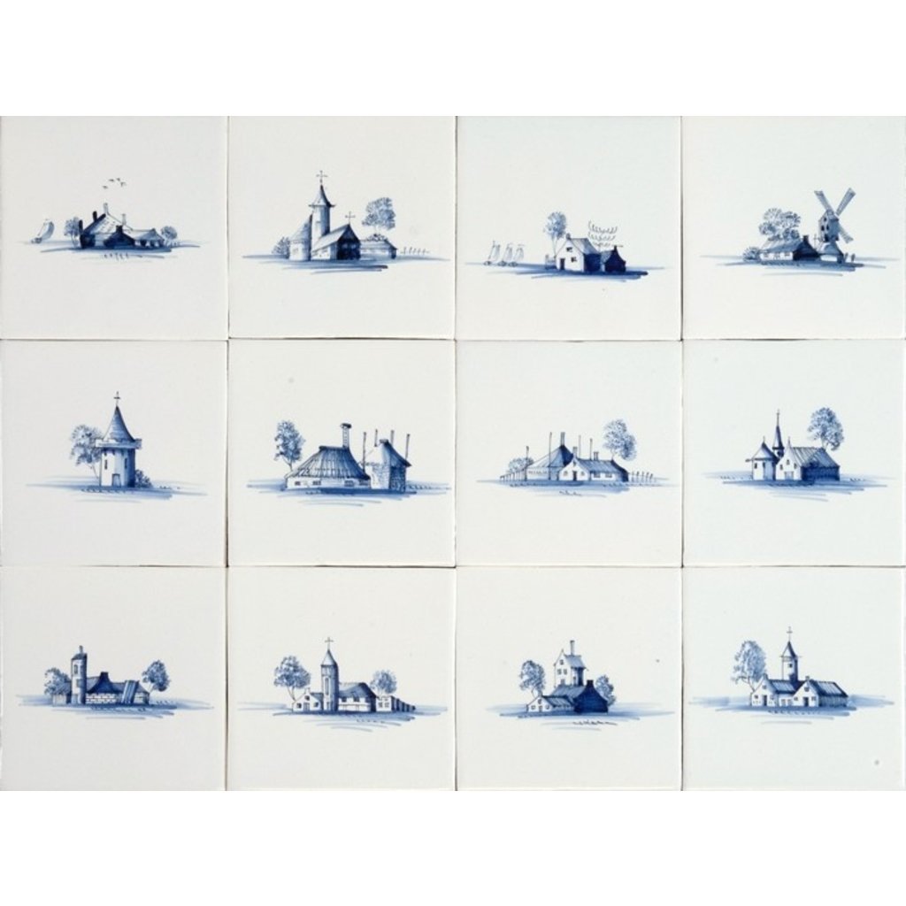 Wanneer u slechts enkele tegels van deze serie tegels met landschappen wilt kopen, kunt u telefonisch of per e-mail contact met ons opnemen. De prijs van een enkele tegel bedraagt € 35,00. De nummering is van linksboven naar rechtsonder.