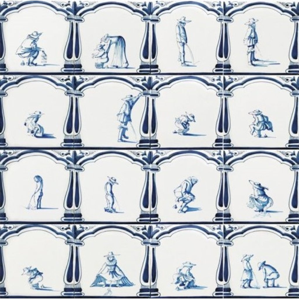 Wanneer u slechts enkele tegels van deze serie tegels met plassers en kakkers wilt kopen, kunt u telefonisch of per e-mail contact met ons opnemen. De prijs van een enkele tegel bedraagt € 60,00. De nummering is van linksboven naar rechtsonder.