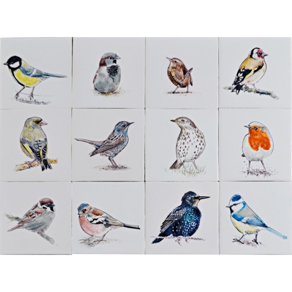 Tegels met tuinvogels in kleur in afmeting 13x13 cm.