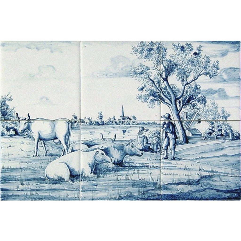 Tegeltableau landschap met koeien in de weide (ca.1800).