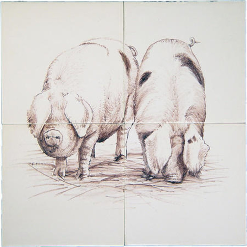 Tegeltableau met twee varkentjes in kleur mangaan.